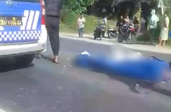 Tanpa terelakkan truk tronton tersebut langsung menabrak korban hingga terpelanting bersama sepeda motornya di badan jalan.