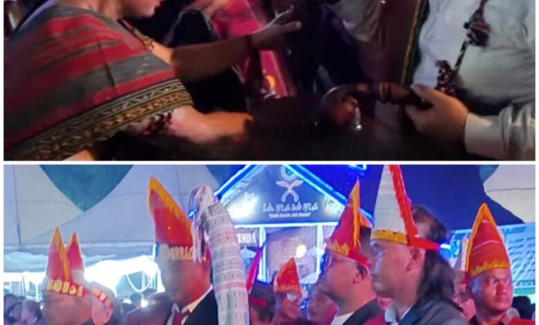 Batu Bara, Spiritrevolusi.id –Bupati Batu Bara H. Baharuddin Siagian, SH, M.Si menerima tanda kehormatan adat berupa Tongkat Tunggal Panaluan dan seperangkat pakaian adat Raja Batak dalam pagelaran Etnis Batak Toba pada Pekan Seni Budaya Daerah (PSBD) ke-VII, di Lapangan Indrasakti, Kecamatan Air Putih, Rabu malam (5/11/2025).