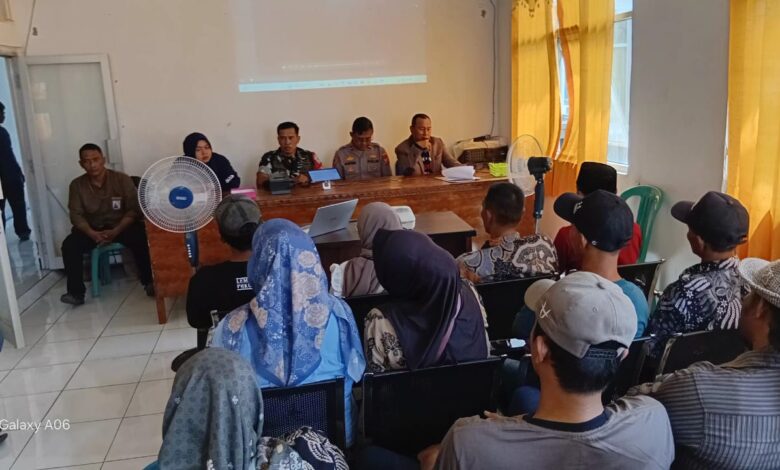 Turut melaksanakan sosialisasi Pemilihan Kepala Desa ,masyarakat Desa Tanjungmekar, Kepala Desa, Kapolsek Pakisjaya, serta Petugas Panitia pilkades.