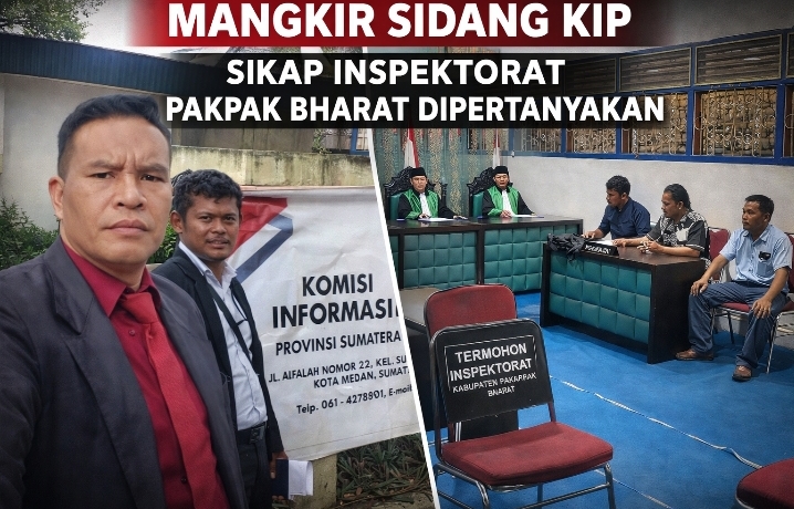 SUMUT, Pakpak Bharat – Sidang lanjutan sengketa informasi publik antara Spirit Revolusi dan Inspektorat Kabupaten Pakpak Bharat di Komisi Informasi Publik (KIP) Sumatera Utara menuai sorotan, setelah pihak termohon tidak menghadiri persidangan yang telah dijadwalkan.