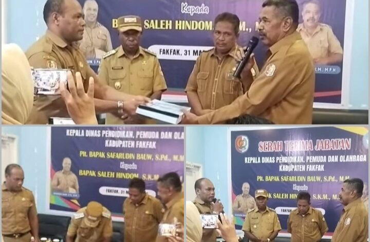 Spiritrevolusi.id | Fakfak, 31 Maret 2026 — Estafet kepemimpinan di Dinas Pendidikan, Pemuda, dan Olahraga (Dispora) Kabupaten Fakfak resmi berganti. Serah terima jabatan (sertijab) dari Pelaksana Tugas (Plt) Kepala Dinas, Safarudin Bau, S.Pd., M.M., kepada pejabat definitif, Saleh Hindom, S.KM., M.PH., berlangsung khidmat dan lancar.