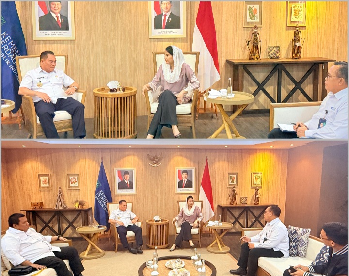 Spiritrevolusi.id | Jakarta, 6 April 2026Langkah cepat kembali ditunjukkan Bupati Fakfak, Samaun Dahlan, dalam mendorong percepatan pembangunan daerah. Bertempat di Jakarta, ia melakukan pertemuan strategis dengan Dyah Roro Esti Widya Putri selaku Wakil Menteri Perdagangan RI, serta Sri Sugy Atmanto guna membahas rencana pembangunan Pasar Seberang Fakfak.