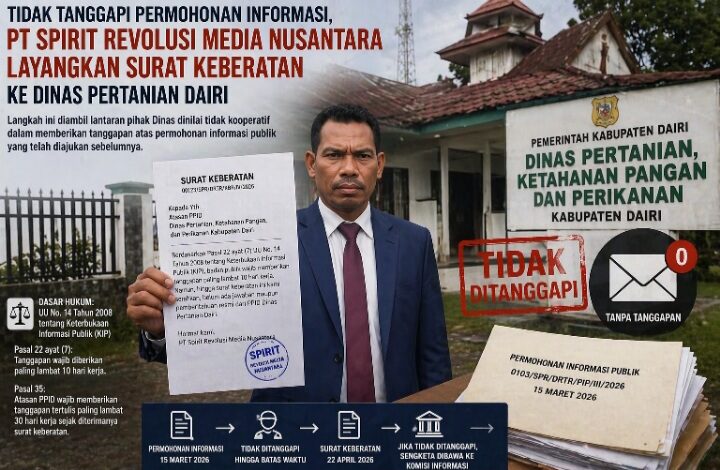 DAIRI – PT Spirit Revolusi Media Nusantara secara resmi melayangkan surat keberatan kepada Atasan Pejabat Pengelola Informasi dan Dokumentasi (PPID) Dinas Pertanian, Ketahanan Pangan, dan Perikanan Kabupaten Dairi pada Rabu (22/04/2026).